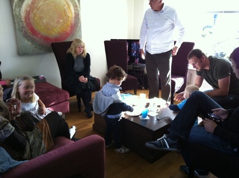 Met mijn oom en tante heb ik heerlijk geknuffeld en papa had voor iedereen pannenkoeken gebakken. Ik mocht ook een klein hapje daarvan proeven en dat was smullen!