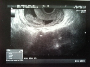 Ik heb de baby ook al een keertje gezien, op de ‘televisie’ bij de dokter (gynaecoloog). Ik was erg onder de indruk, vooral ook omdat de dokter 2 ‘televisies’ heeft.
