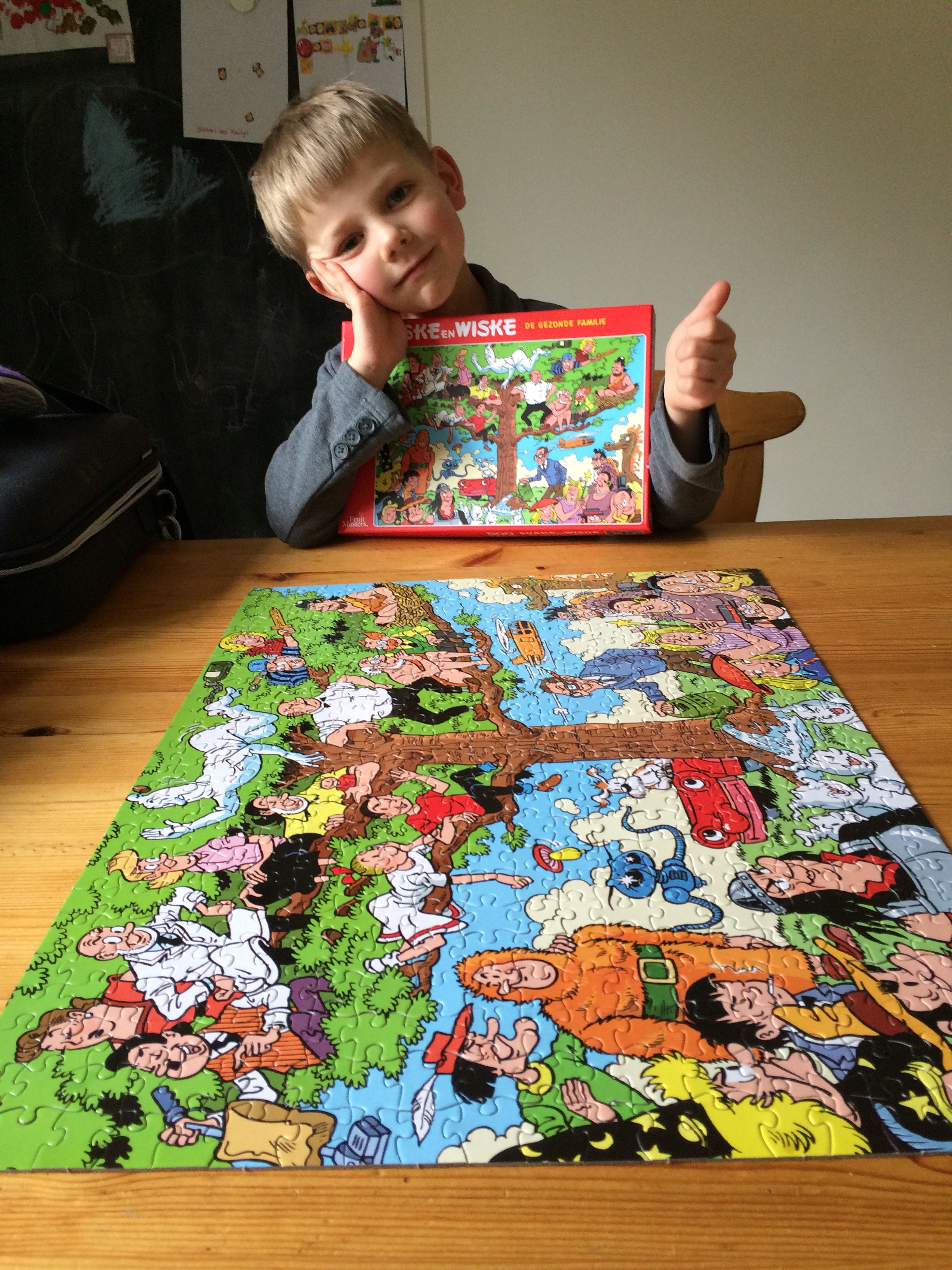Het was best wel een moeilijke puzzel om te maken. Zoveel kleine stukjes…maar samen met mama lukt dat best. Ook papa, oma Mery, Anoek en Caro hebben eventjes meegeholpen. Ik vind het veel leuker om een puzzel samen te maken.