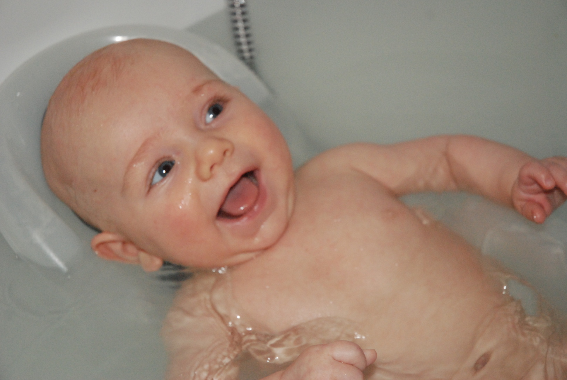 Sinds een paar weken ga ik ook wel eens thuis in het ‘grote’ bad. En dat vind ik erg leuk, zoals te zien is op de foto.